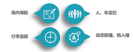 通过对机场人员、车辆、叉车、检修工具安装定位标签,实现室内及半覆盖区域移动目标的精确定位。 同时内建自定位系统,在无法进行定位覆盖的区域,采用自定位方式确立相对位置,产生防撞预警。